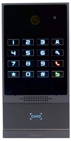 The OP230B is designed to meet high durability standards (IP66 and IK07), offering a built-in HD camera, night vision capability, and H.264 codec support. Its camera provides a wide field of view.