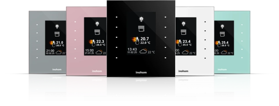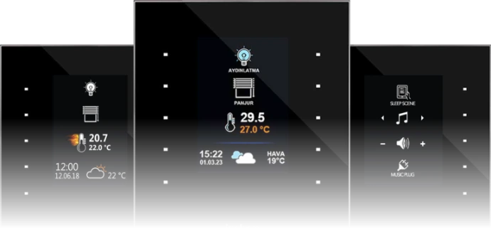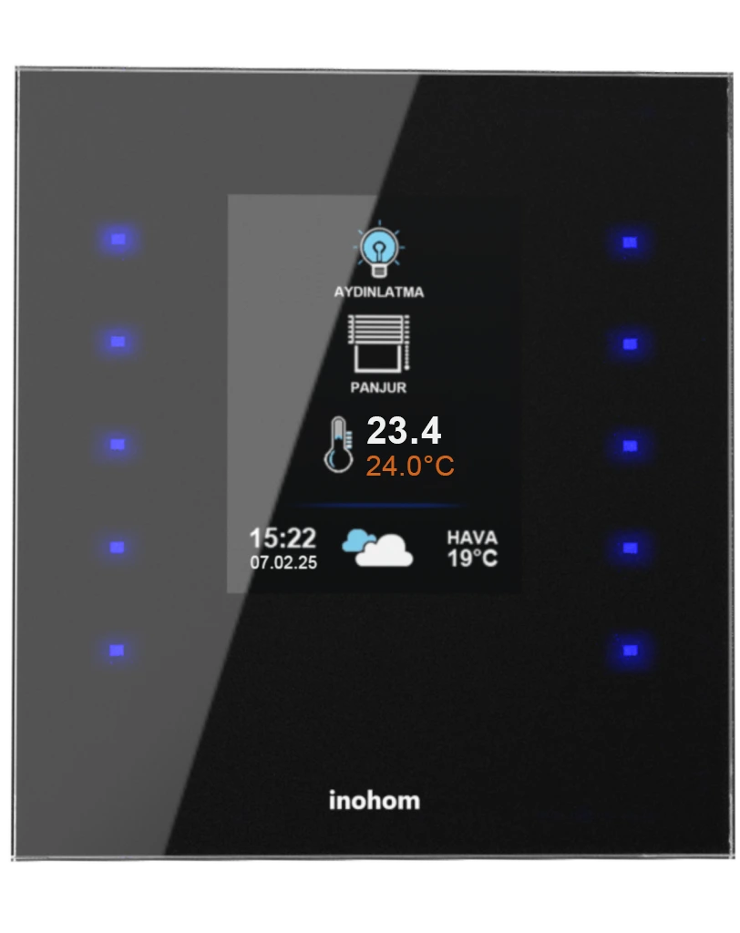 With the Inohom Smart Room Switch, which is also a smart room thermostat, you can control lighting, curtains-blinds, heating system and scenario. The Smart Room Switch Offers Aesthetics And Technology Together With Tempered Glass Design And Different Color Options.